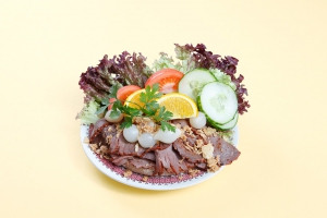 Rostbiff, remouladsås, syltlök, rostad lök, sallad, gurka, tomat, apelsin och persilja. Matigt fullkornsbröd utan mjölk och utan ägg. Smörgåsmargarinet är vegetabiliskt. Det är gluten i rostad lök. Det finns även bröd utan gluten.
